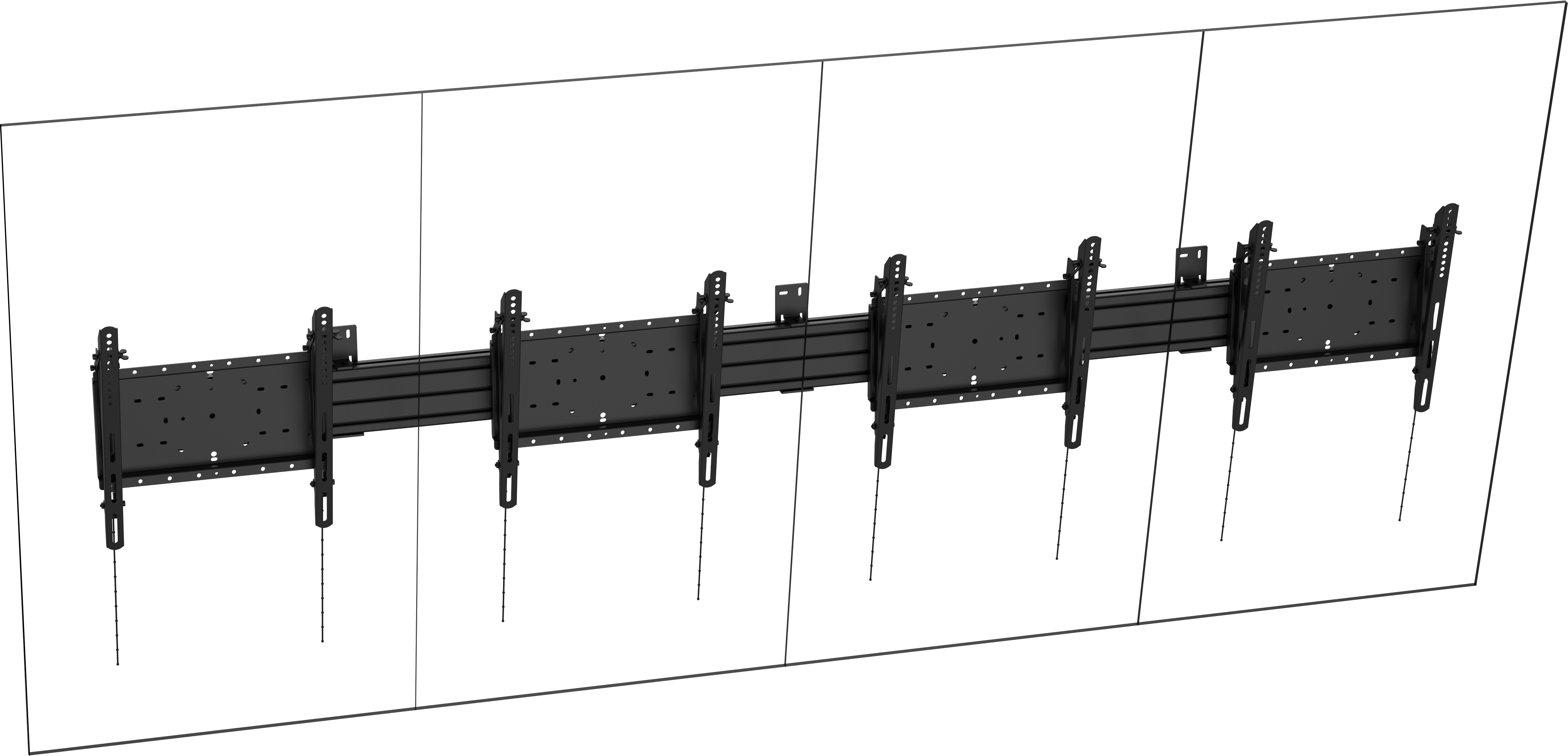 Supporta due schermi da 55" a 86". Ciascuno schermo può pesare fino a 45 kg. La rotaia in alluminio è composta da tre parti e consente l'ajustamento laterale dei schermi.