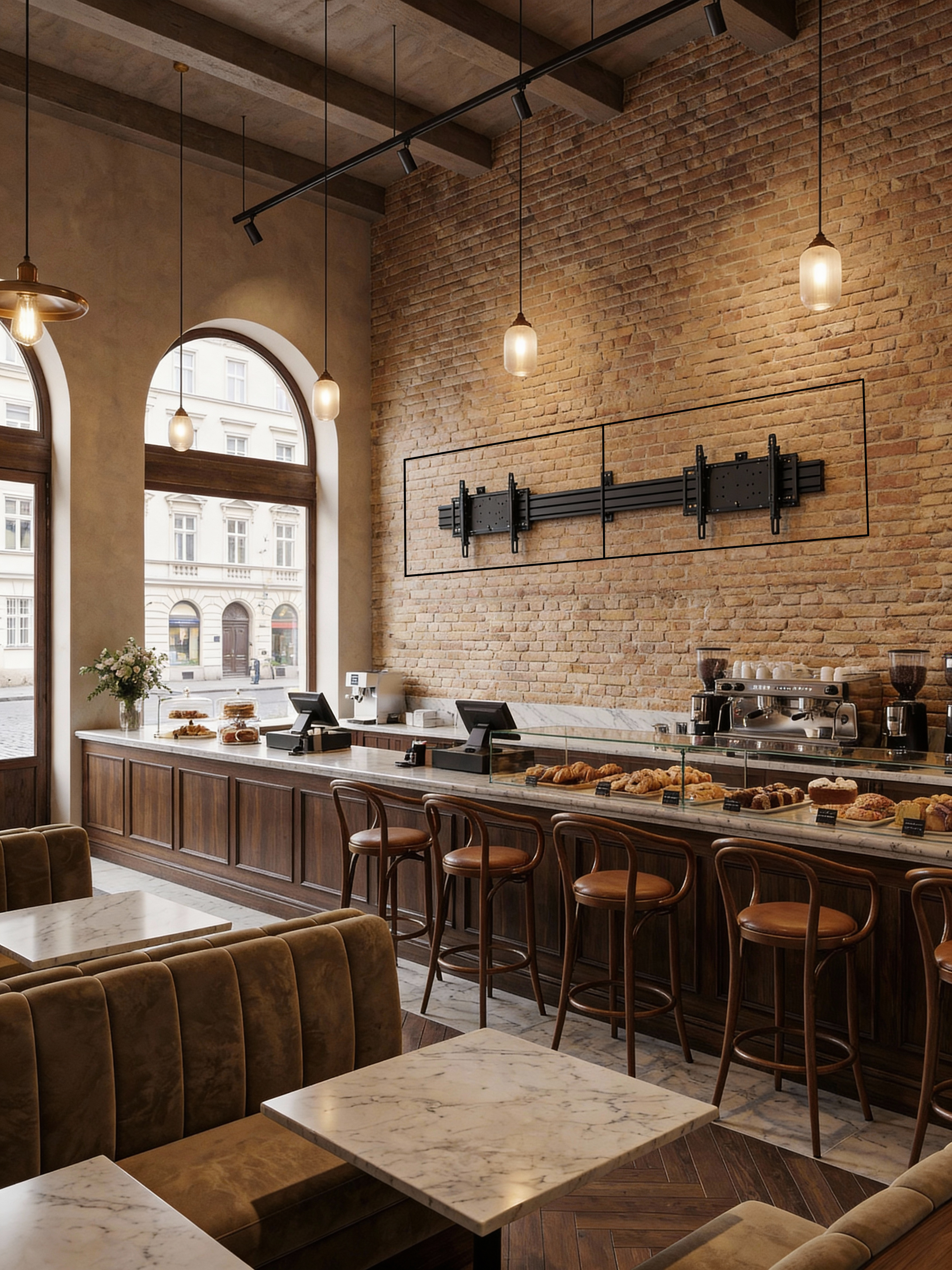 Ontworpen voor AV-integrators die Quick Service Restaurant (QSR) klanten bedienen, is deze muurrailbevestigingsset uitbreidbaar en gebruiksvriendelijk.