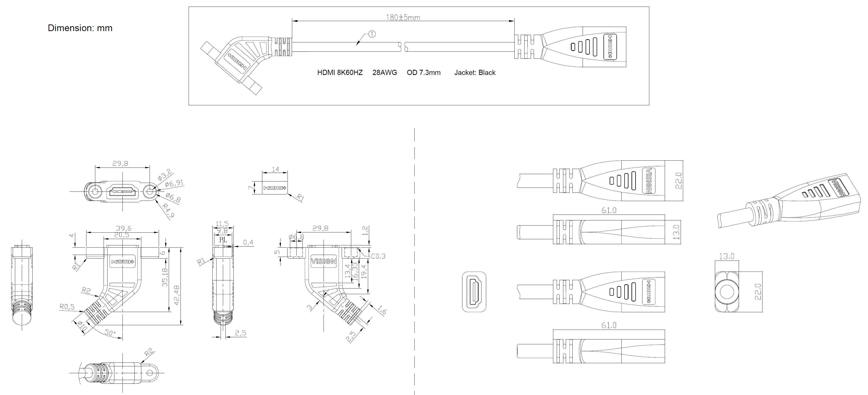 - Inclui um cabo pequeno na parte traseira, com conector HDMI fêmea